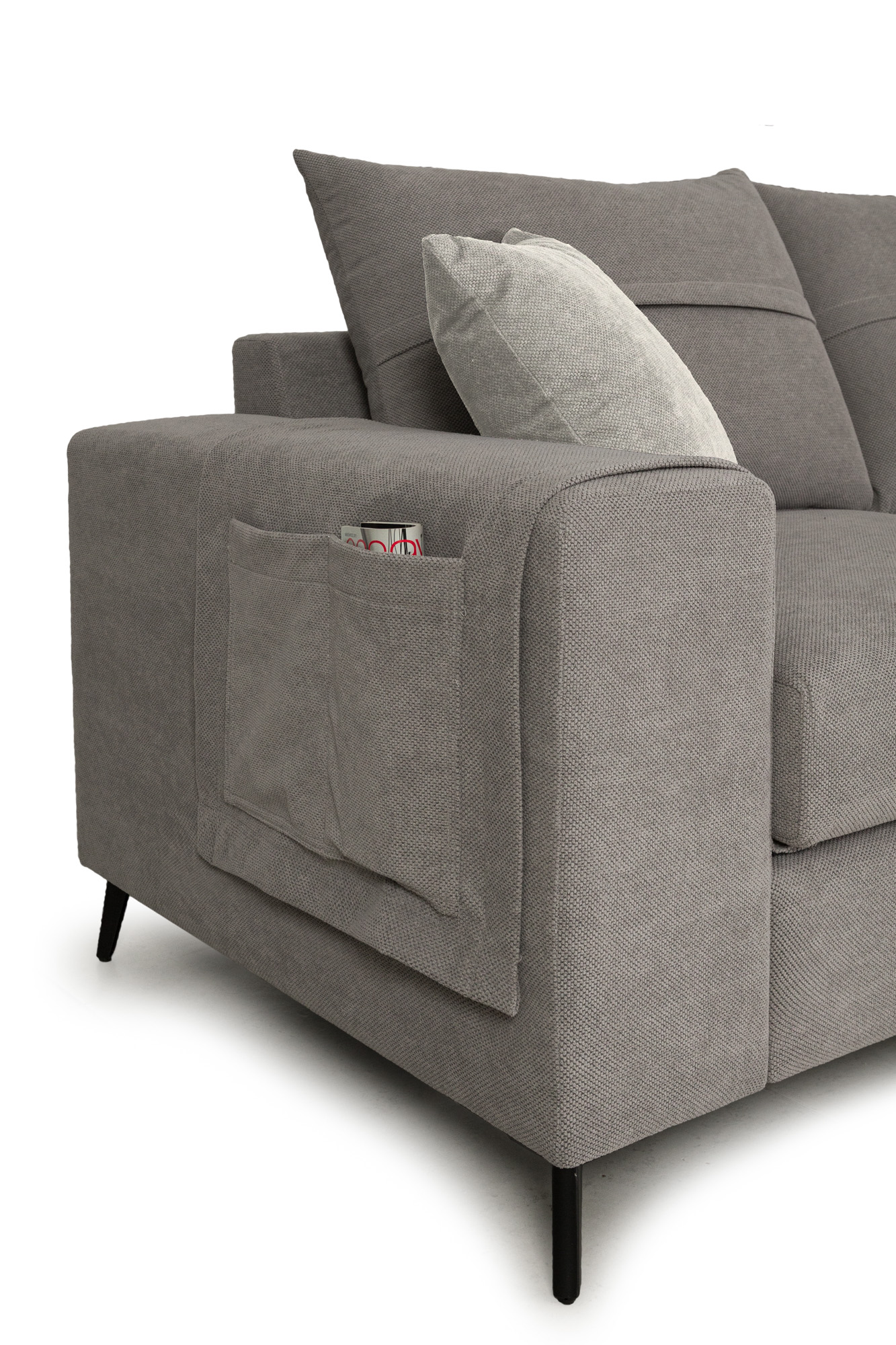 Από σκελετό μοριοσανίδας,ξύλο λεύκας και επένδυση MDF + αφρολέξ, ποδαρικό από υψηλής ποιότητας πλαστικό με μεταλλικό φινίρισμα, μαξιλάρι καθίσματος αφρολέξ 400άρι plus, με διπλή βάτα ενισχυμένη με ελαστικές ίνες και μαξιλάρι πλάτης από 100% καθαρή σιλικόνη. Μαζί και 2 μαξιλάρια φιγούρας.Αφαιρούμενα καθίσματα από ύφασμα Easy Clean (90% αδιάβροχο)